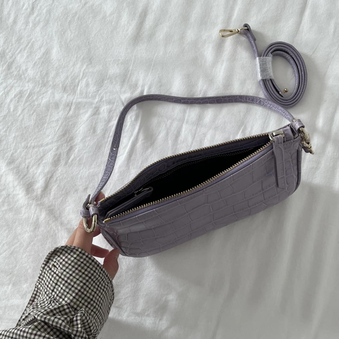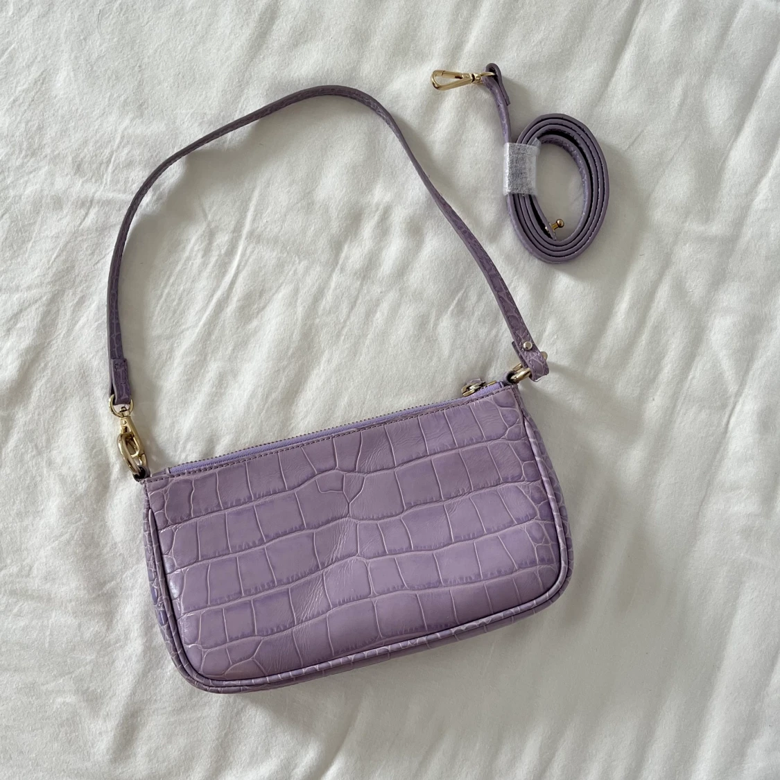 supergullig lila läderväska med krokodilmönster från & other stories! knappt använt. har två olika band <3 nypris 990kr