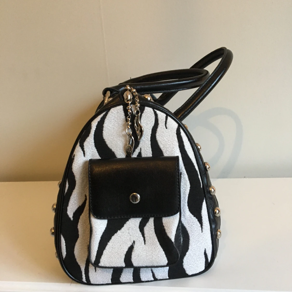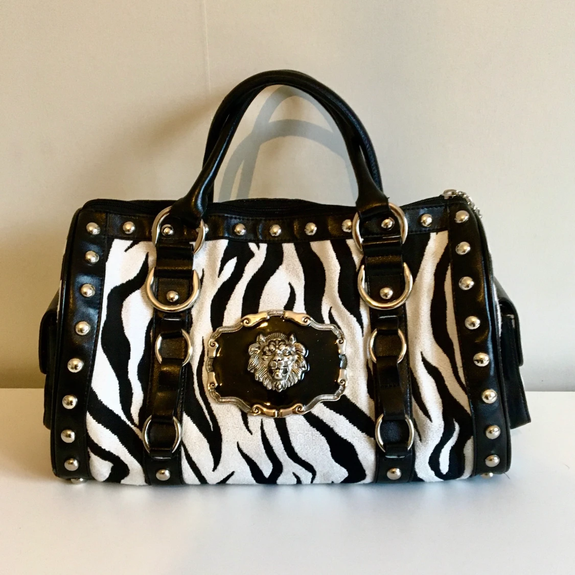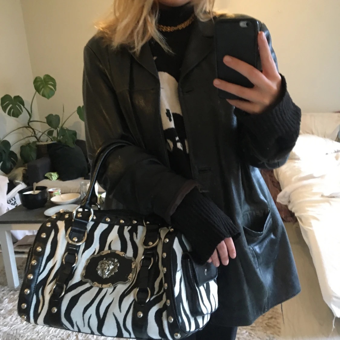 Har bestämt mig för att sälja världens coolaste väska! zebramönstrad med asfeta detaljer så som nitar och ett lejonhuvud?! Väskan är i jättebra skick och lagom stor! Köper du detta statement piece kommer du va ballast i stan och alla kommer vilja ha dig, eller den?😉 bjudgivning sker i kommentarerna (obs bud med Minst 10 kr) för vidare frågor skriv i dm:s 🥰💕