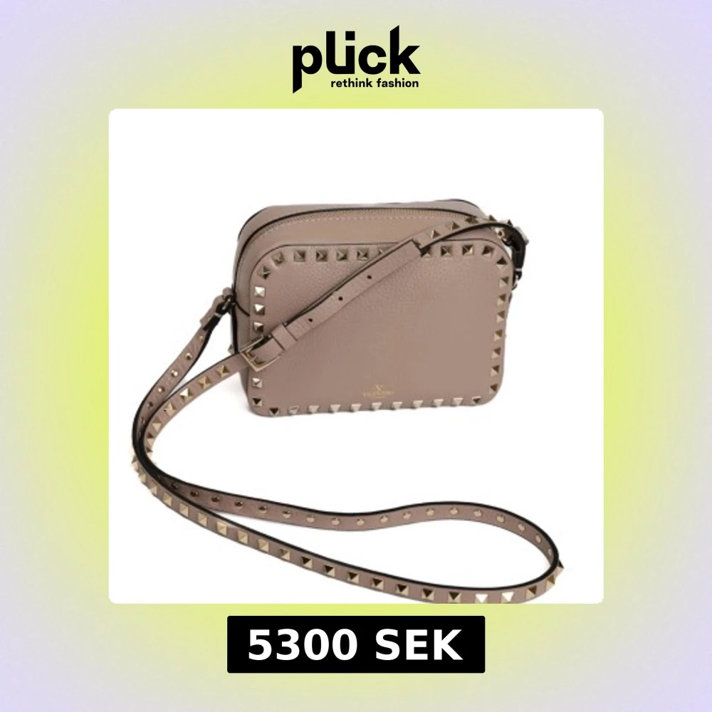 Snygg beige axelväska från Valentino med guldfärgade nitar runt kanterna. Väskan har en justerbar axelrem och är perfekt för att ge en edgy touch till din outfit. Väskan är äkta då de går att kolla upp. Köpte av en tjej på Plick där äktighets bevis fanns! Ser ut som ny och har inga defekter💗