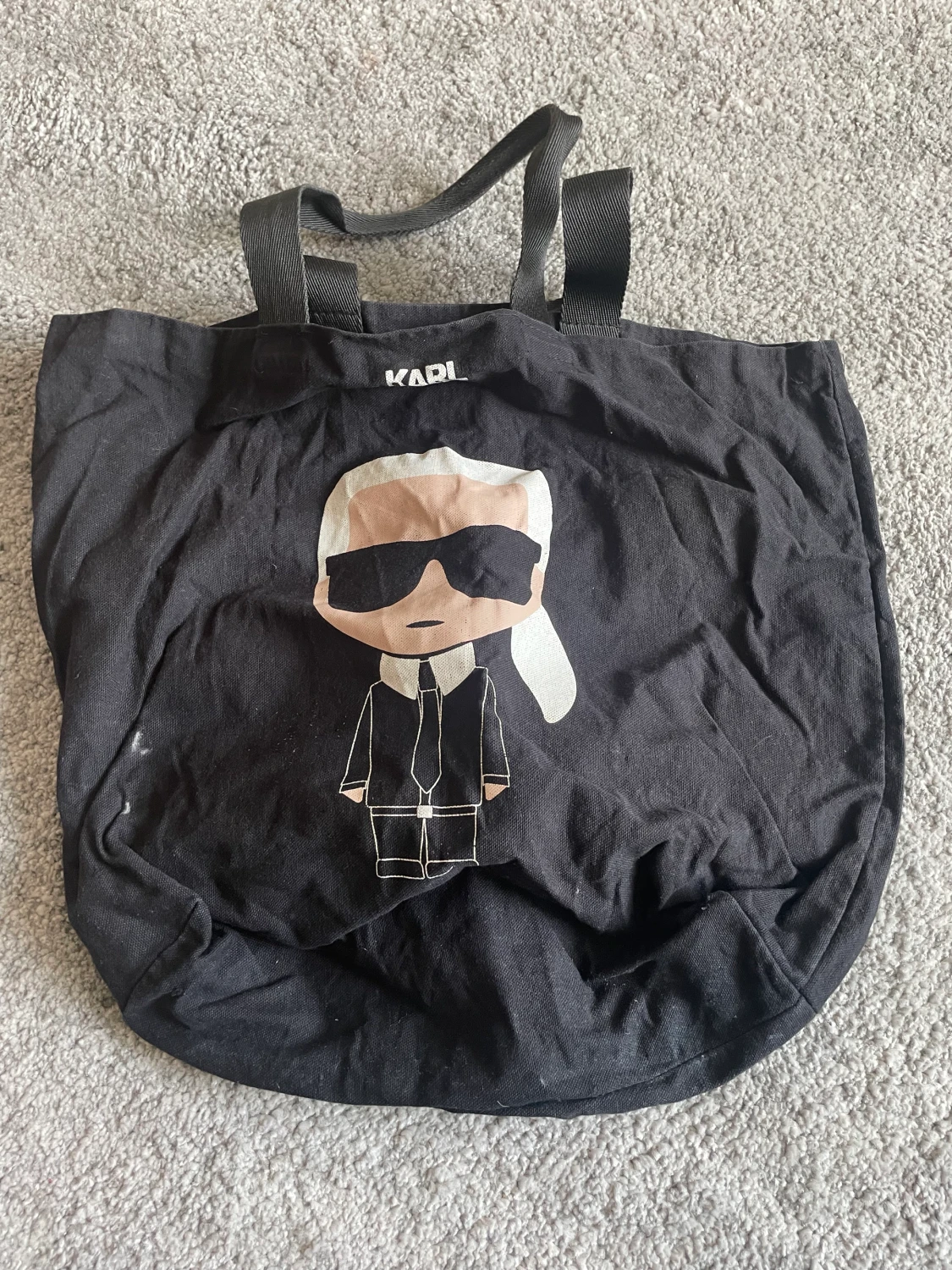 En rymlig tygpåse från Karl Lagerfeld. Stryks innan den skickas!