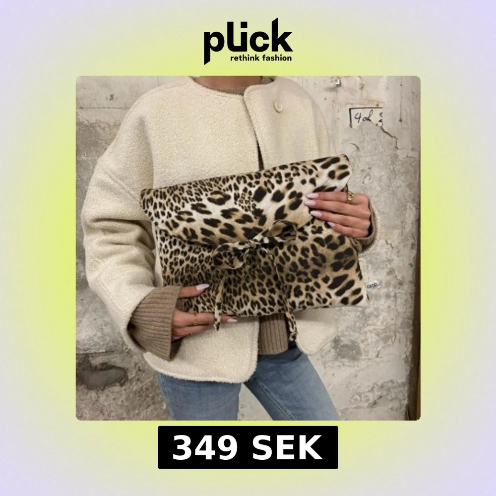 Snygg leopardmönstrad kuvertväska med knytband. Perfekt för att ge din outfit en djärv touch. Väskan är lätt att bära och rymmer det viktigaste.