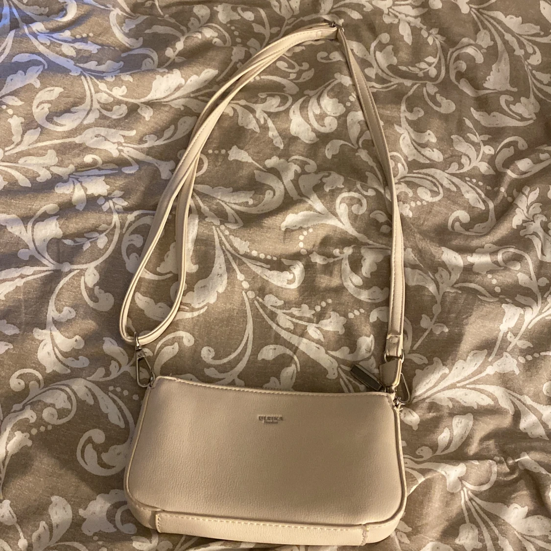 En beige väska som aldrig är använd. Man kan byta vilken axelräm rep man vill ha på den. Köpt för 400kr. Helt ny i skick