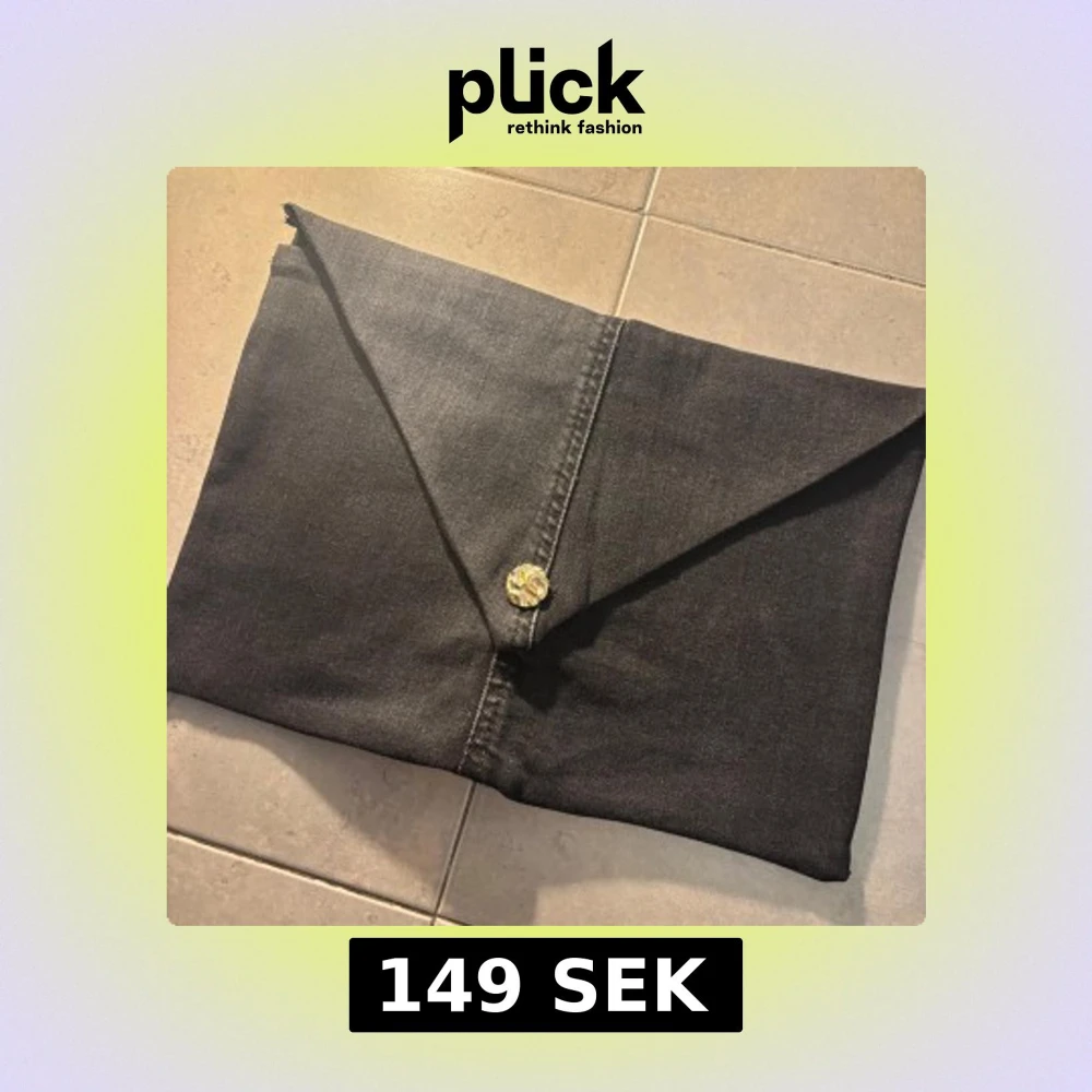 Unikt datafodral i svart jeanstyg med guldknapp. Insidan är fodrad med ett mjukt silkestyg för extra skydd. Passar 13 tum (vanlig skoldator)