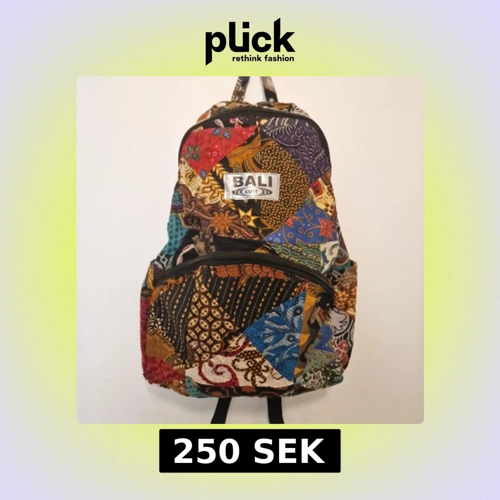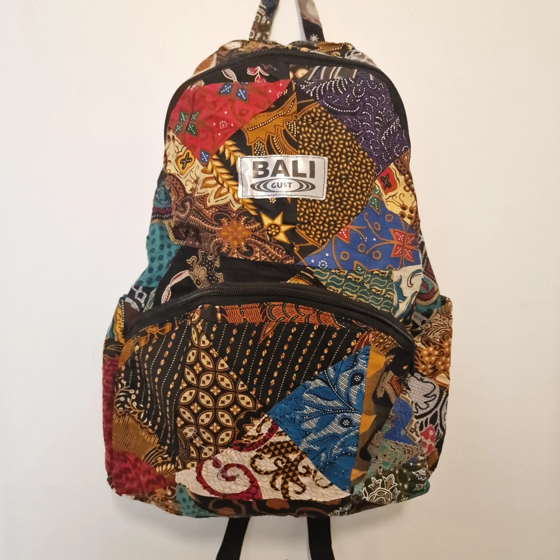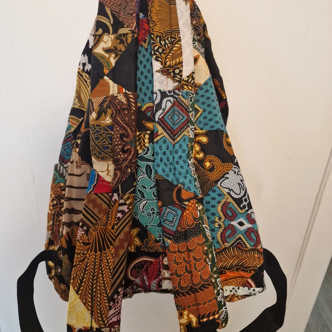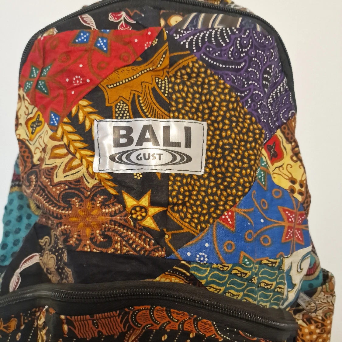 Unik ryggsäck med patchworkmönster i flera färger från Bali Gust. Med coola etno-inspirerade detaljer och mönster. Helt ny och inköpt på Bali.