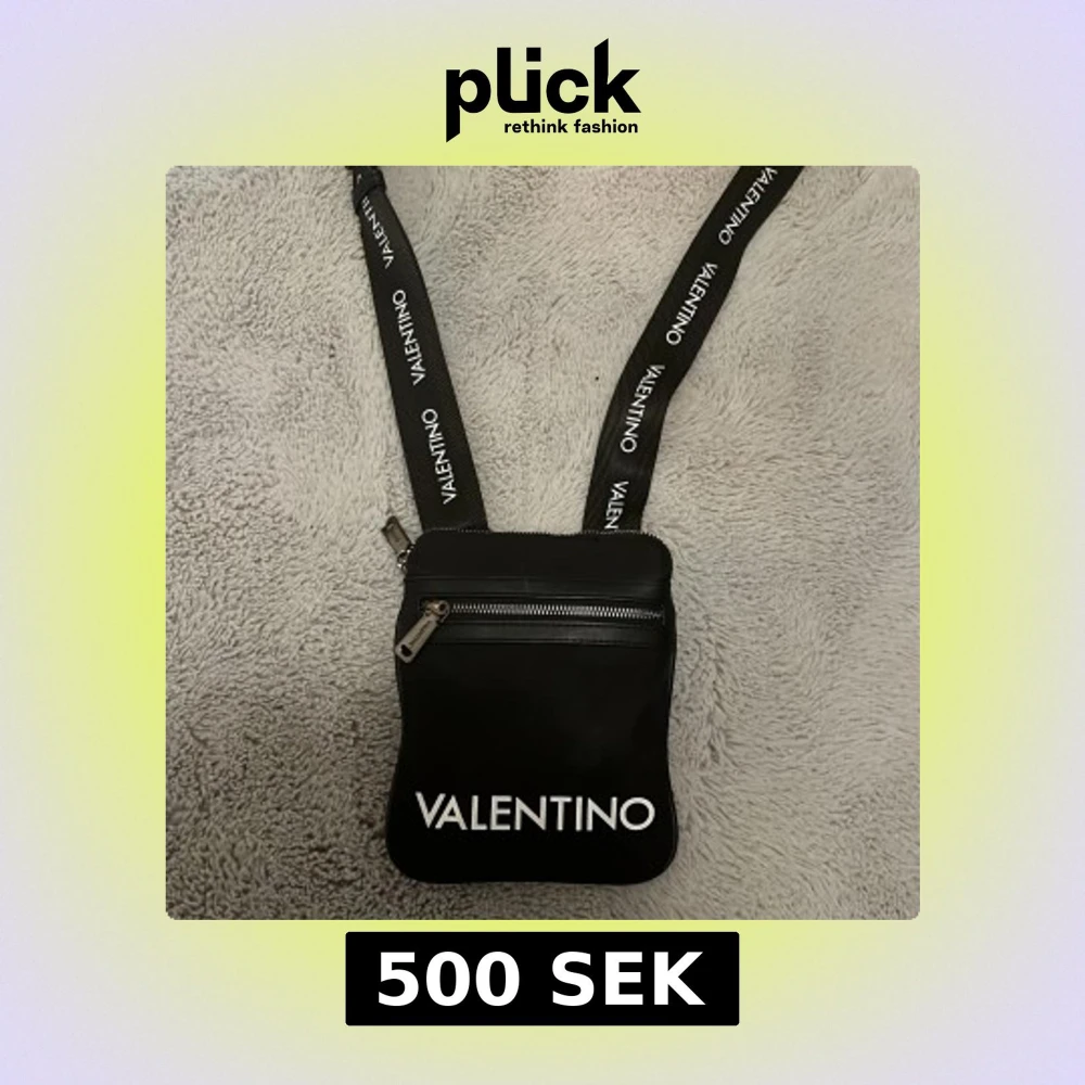 Snygg svart axelväska från Valentino med justerbar rem och dragkedja. Väskan har en stilren design med logotypen tryckt i vitt på både remmen och framsidan. Perfekt för att bära med sig det viktigaste.