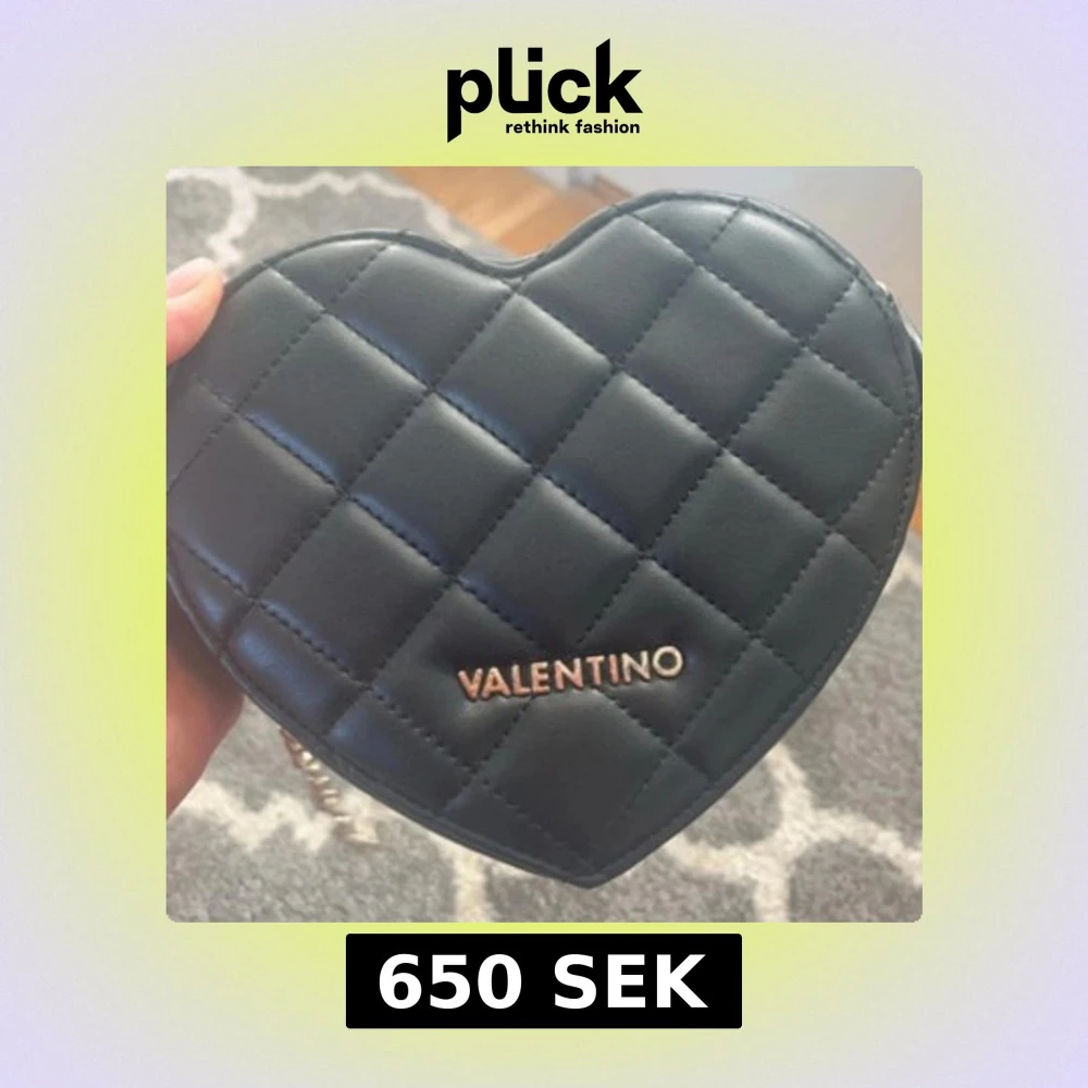 Snygg svart hjärtformad axelväska från Valentino med quiltad design och kedjerem. Väskan har en dragkedja upptill och är perfekt för att bära dina nödvändigheter med stil. Den eleganta designen gör den till ett utmärkt val för speciella tillfällen.Den är i perfekt skick utvändigt och ser ut som ny! Endast lite smuts inuti, men inget som påverkar användningen. Öppen för förhandling.