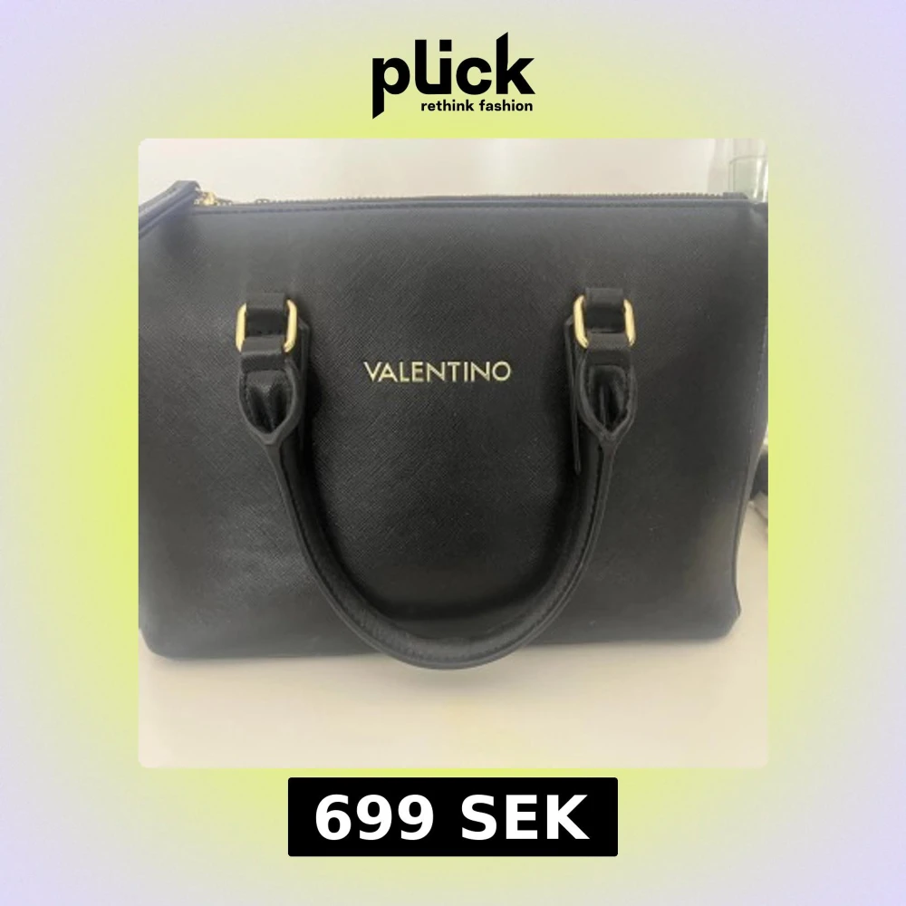 Snygg svart handväska från Valentino med guldfärgade detaljer och dubbla handtag. Väskan har dragkedja upptill och ett rymligt huvudfack med innerficka. Perfekt accessoar för att lyfta din outfit.