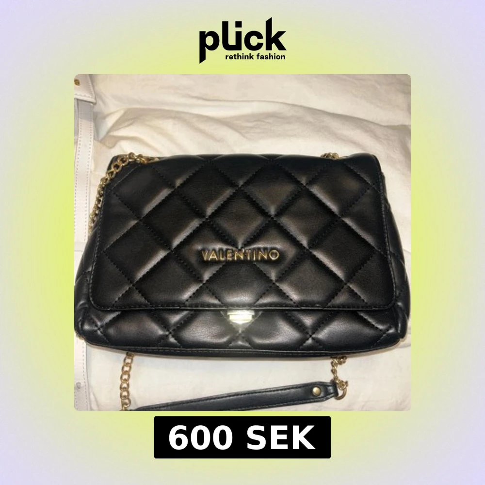 Säljer en svart quiltad axelväska från Valentino med guldfärgad kedja och logga framtill. Väskan har en klassisk design och är perfekt för att lyfta vilken outfit som helst.