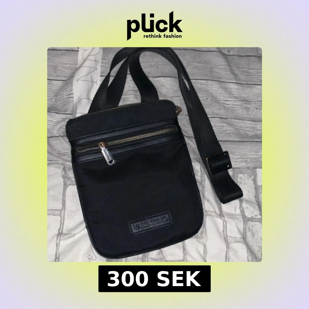 Snygg svart axelväska från Valentino med justerbar rem och dragkedja i metall. Väskan har ett stilrent utseende med diskret logga framtill och extra innerfack med dragkedja. Perfekt storlek för mobil, plånbok och andra essentials.