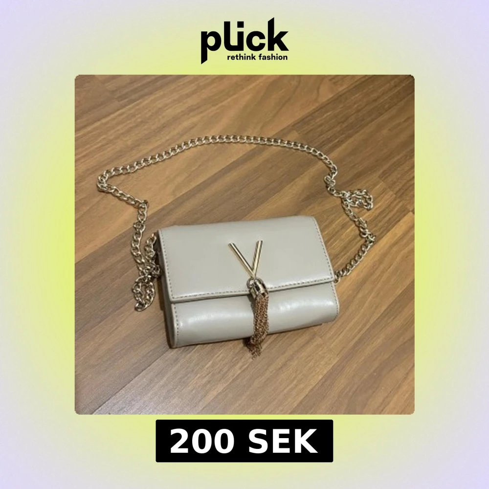 Snygg beige Valentino axelväska med guldfärgad kedja. Perfekt för att ge en elegant touch till din outfit.
