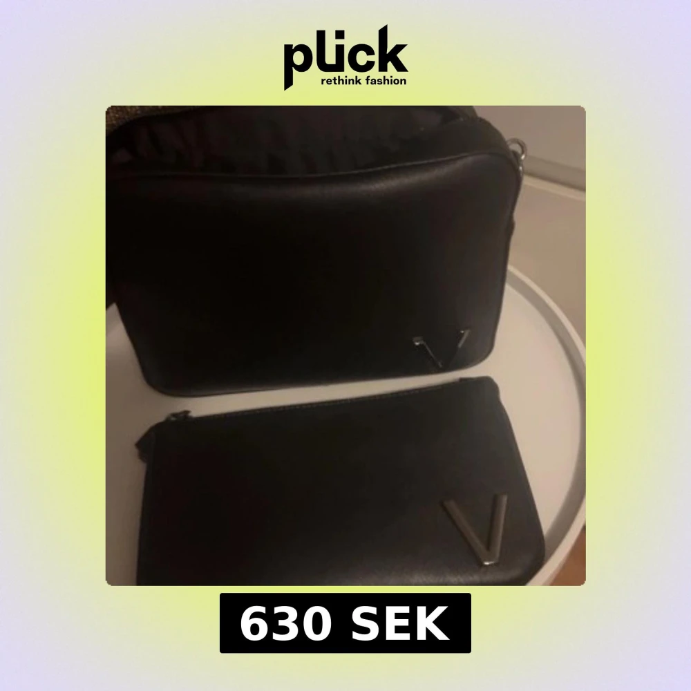 Säljer en stilren svart axelväska i skinn från Valentino med matchande plånbok. Båda har ett snyggt V-emblem i metall framtill och enkel, modern design. Perfekt för dig som gillar klassiska accessoarer med en lyxig touch. Pris kan diskuteras.