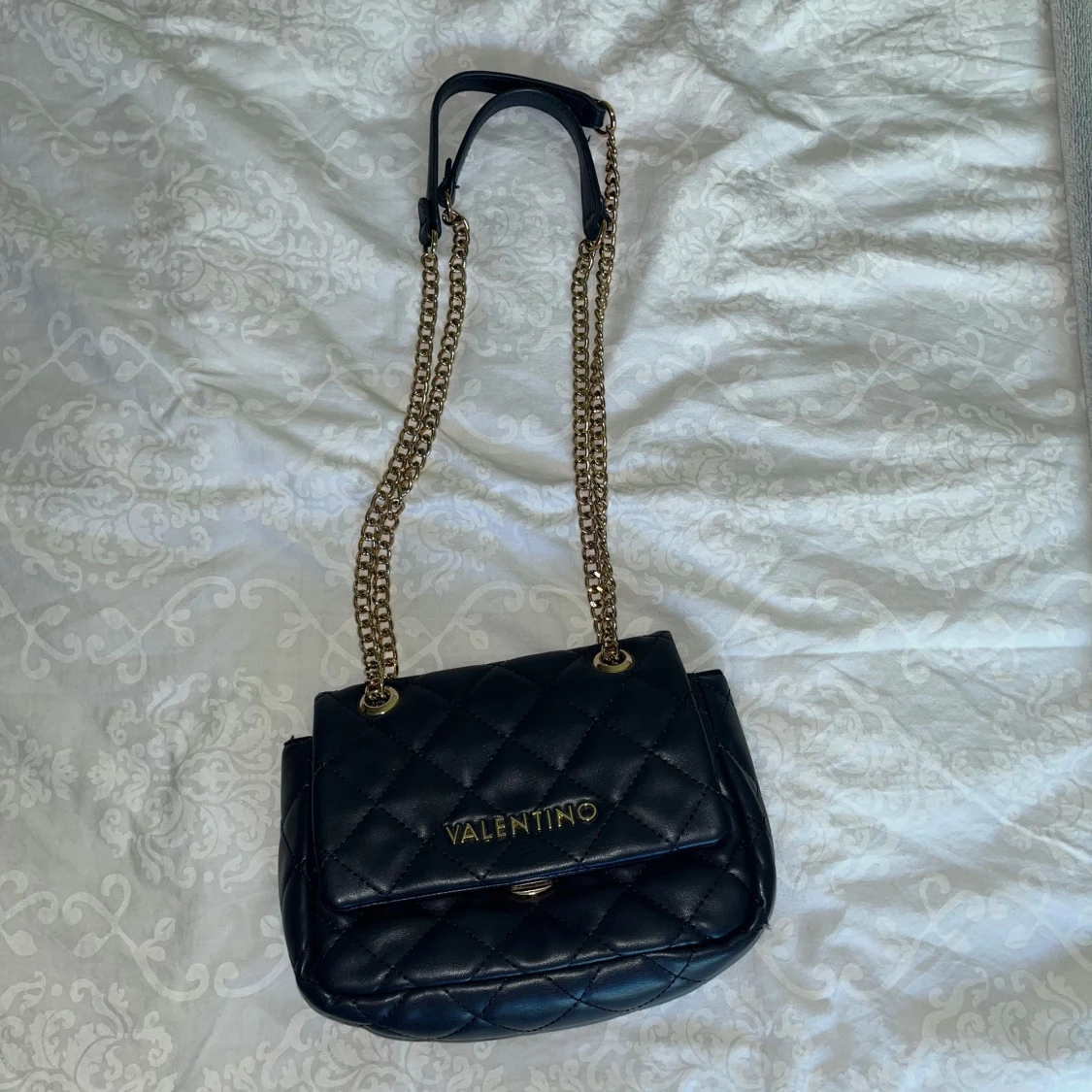 Säljer denna mörkblå valentino väska🤩. Bandet går att göra längre/kortare. Köpte väskan förra året men har knappt kommit till användning, därför är den nu till säljes.💗 Jag köpte väskan för 1000 kr