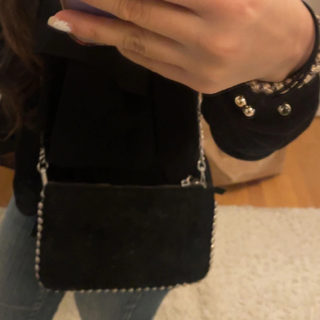 säljer denna jätte fina väskan från zara som liknar tiamo! silvrig kedja med två fack 💕💕 tryck på köp nu
