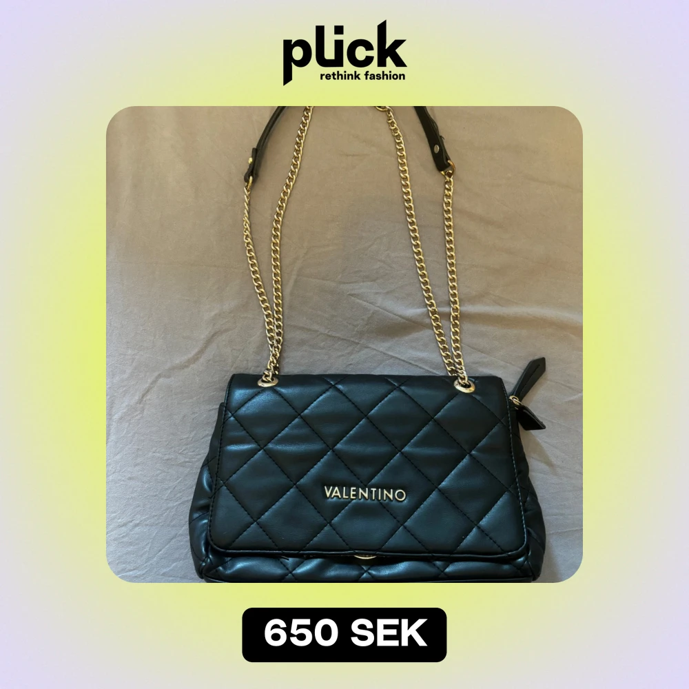 Säljer en elegant svart axelväska från Valentino i mycket bra skick. Väskan är quiltad med guldfärgade kedjedetaljer och har en praktisk dragkedja. Perfekt för både vardag och fest! Väskan är använd en del men fortfarande skitsnygg. Köp för 1500 kr säljer för 600/700kr
