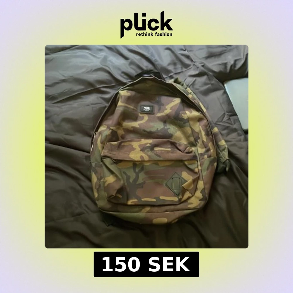Säljer en snygg ryggsäck från Vans med klassiskt camouflage-mönster i grönt, brunt och svart. Väskan har ett stort huvudfack, en framficka med dragkedja och justerbara axelremmar. Perfekt för skolan eller stan! Bara använd fåtal gånger! :3