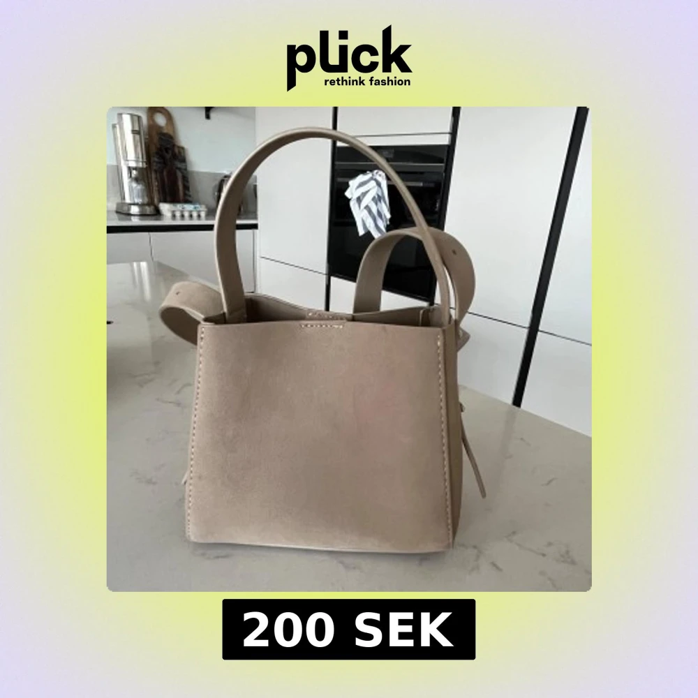 Snygg beige axelväska i mocka med stilren design. Väskan har en praktisk storlek och är perfekt för att bära med sig det viktigaste. Den har både handtag och en axelrem för flexibel användning.