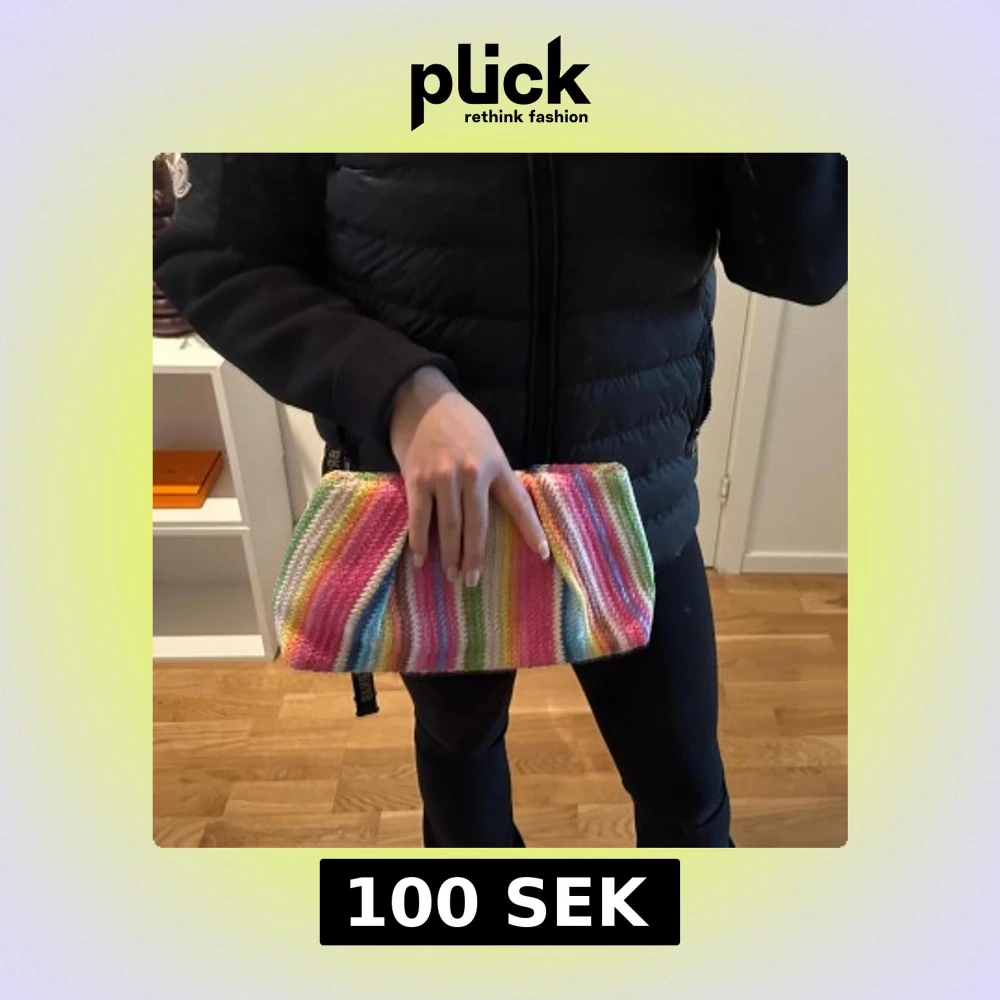 Säljer en superfin kuvertväska med färgglada ränder i rosa, grön, gul, blå och orange. Perfekt för att liva upp vilken outfit som helst! Väskan är kompakt och lätt att bära med sig.