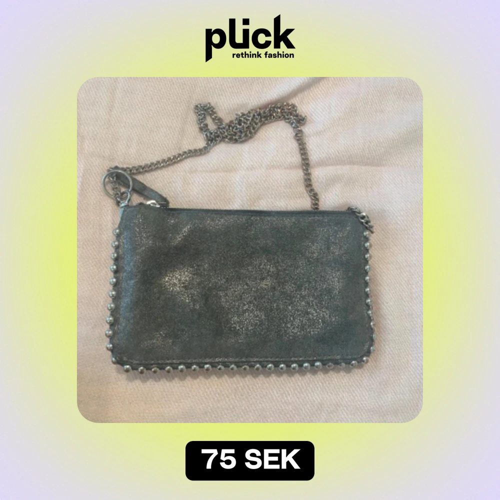 Säljer denna fina silveraktiga handväska från Zara. Helt okej skick. Går att ta av kedjan om man vill använda den som kuvertväska ❤️