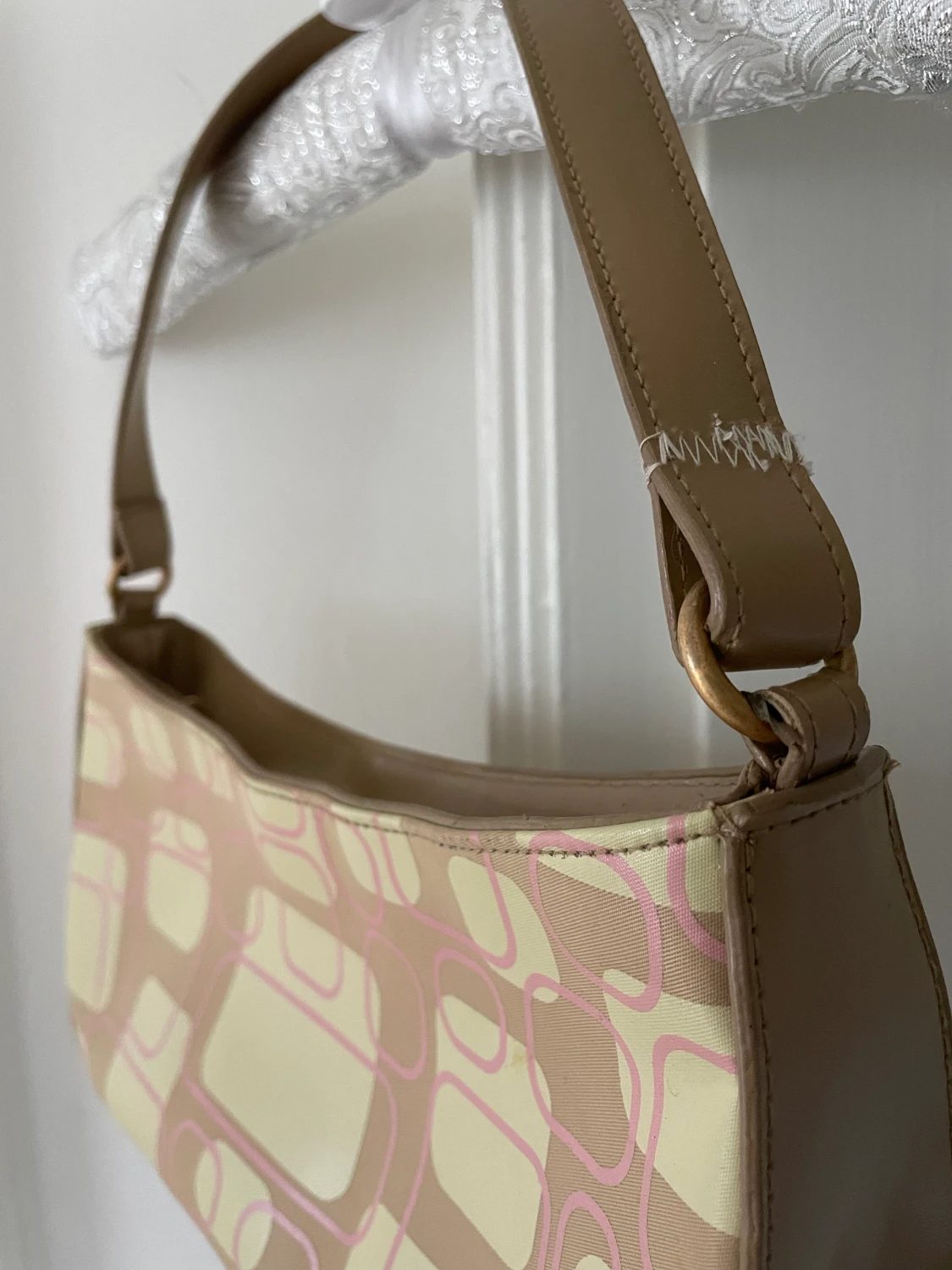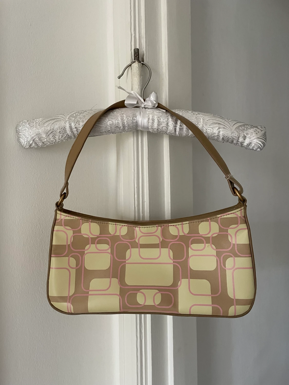 Väska i y2k-stil i mycket bra skick. Har små fläckar på insidan (se bild) + att jag har sytt på ena bandet för att korta av det (se bild). Kom med prisförslag!