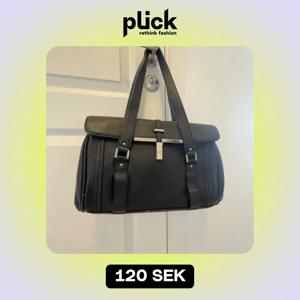 Säljer en svart handväska som är medelstor och rymmer hyfsat mkt. Det finns 2 stora innerfack och 2 små + 1 litet på utsidan. Är i fint skick förutom några få skavsår i botten, se bild 3