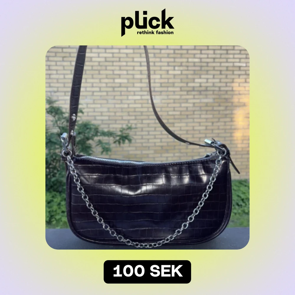 Liten väska, färgen( plommon) mörk lila som ger även lite av brunfärg. Helt ny väska (oanvänd). Silver Kedjor