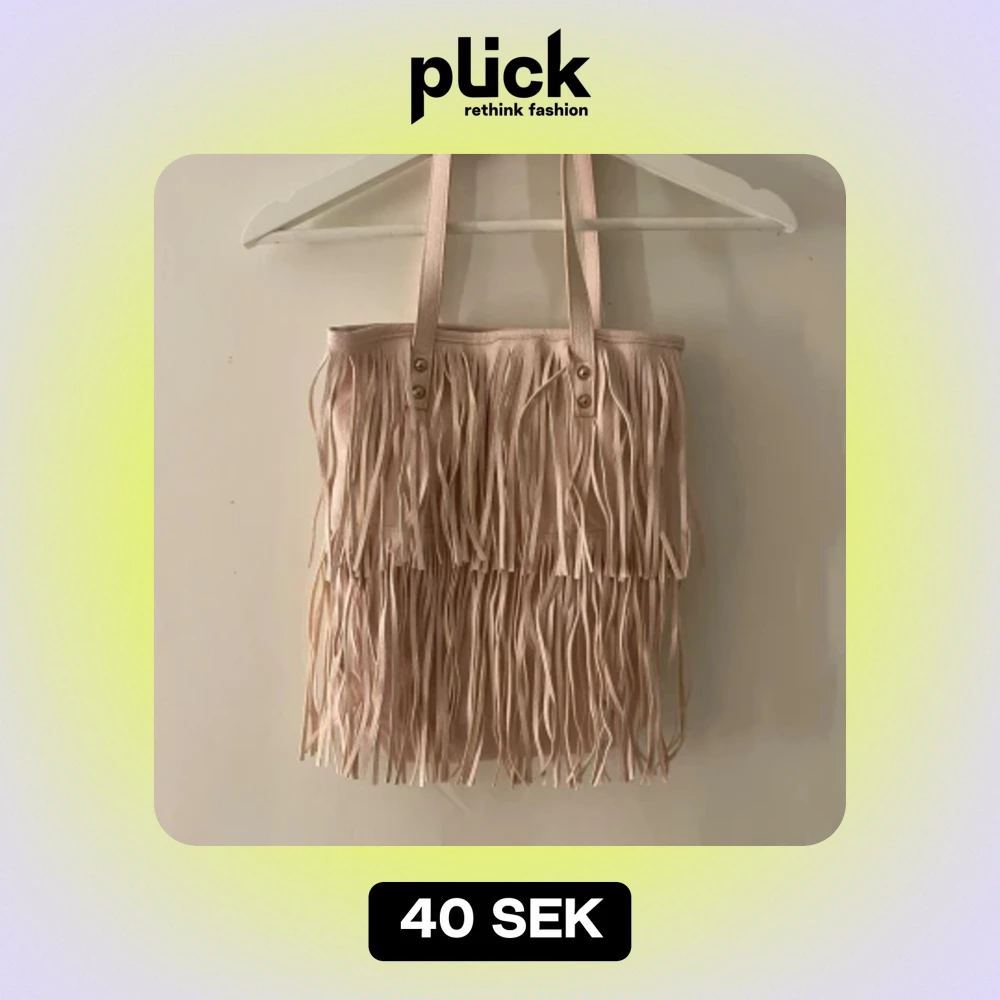 Säljer denna fina väskan med fransar då den inte används längre! Väskan är gjord i syntetmaterial och har en dragkedja inuti! Lite små defekter men annars bra skick!🤍💕