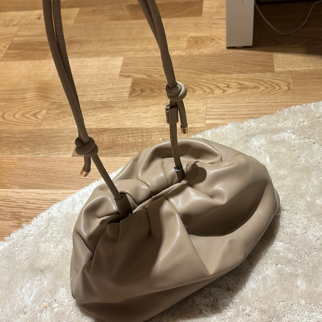 väldigt rymlig väska i beige färg, kan användas som ett necessär också (vilket jag gjort) inga defekter och är i läder material