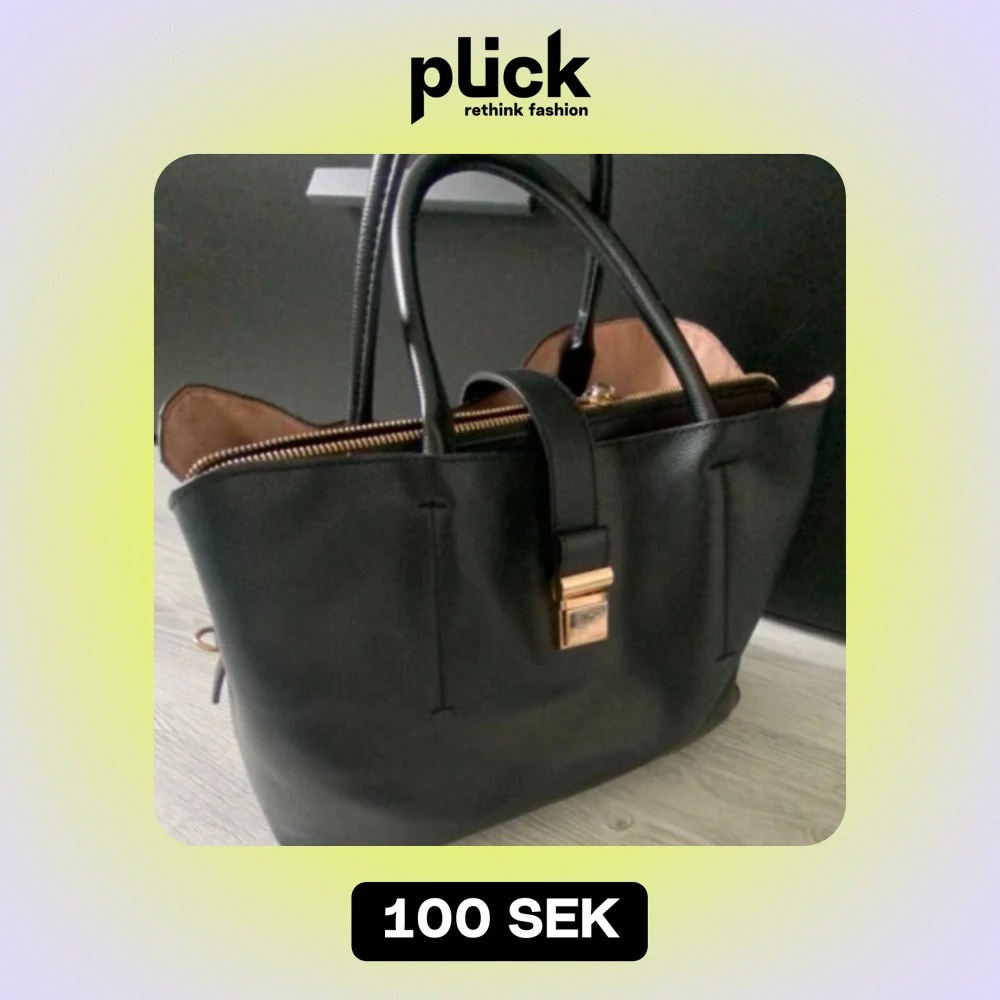 Fin svart väska med guld detaljer som man får plats saker i, den har tre stora fack😇