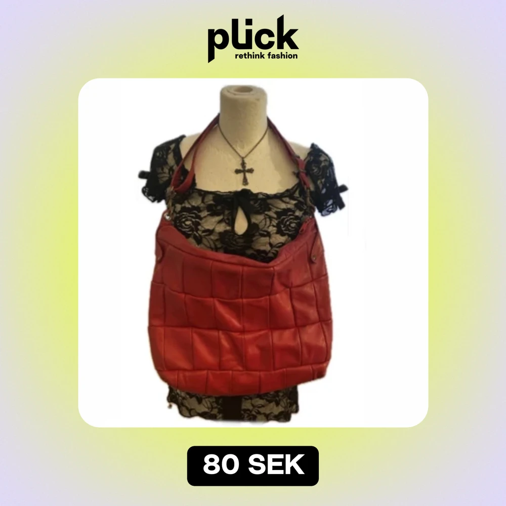 stor röd axelväska med blommor foder inuti !😁 längd- 34 cm och bredd 40cm💕 axelbandet går att göra längre och kortare. jätte bra skick och inga defekter 😊