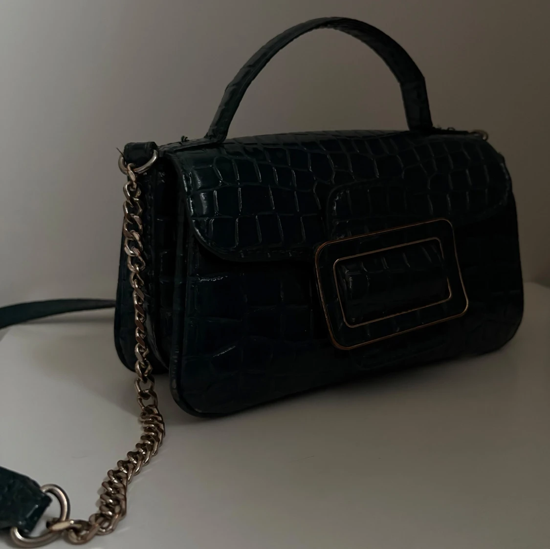 Snygg mörkgrön axelväska i coolt mönster. Knappt använd så i jättebra skick! Skriv för fler bilder!