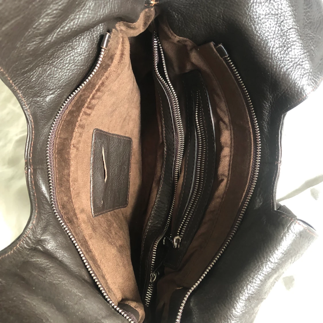 Skinnväska, slitage efter använding men väldigt fin! Flera fack inuti. Köpare står för frakt.