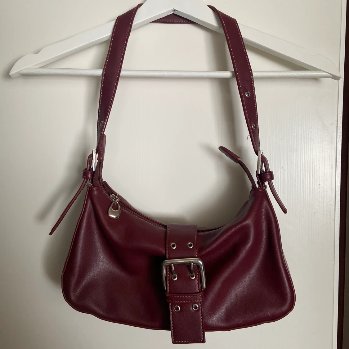 Söt vinröd/burgundy baguetteväska! Rymlig och skön att ha på axeln!