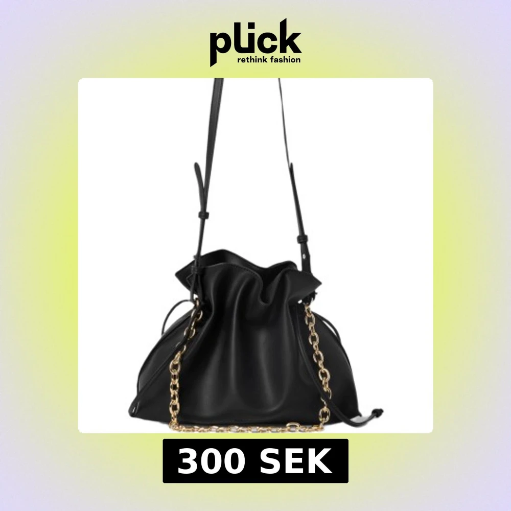 Snygg svart axelväska i skinn med cool snörning upptill och en chunky guldfärgad kedja som detalj. Väskan har justerbar axelrem och en mjuk, slouchy form som ger en trendig vibe. Perfekt för dig som vill ha en stilren men ändå iögonfallande accessoar. ‼️ny pris: 599‼️