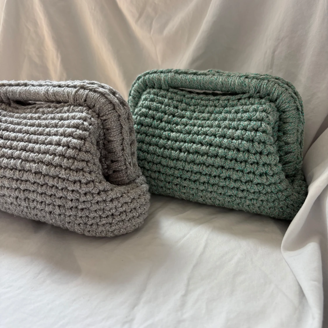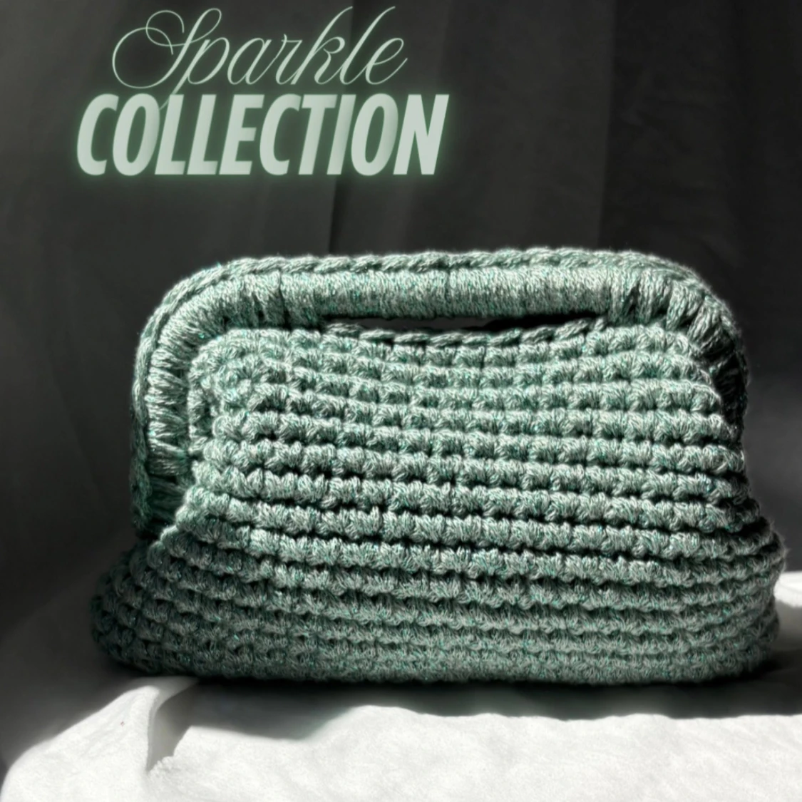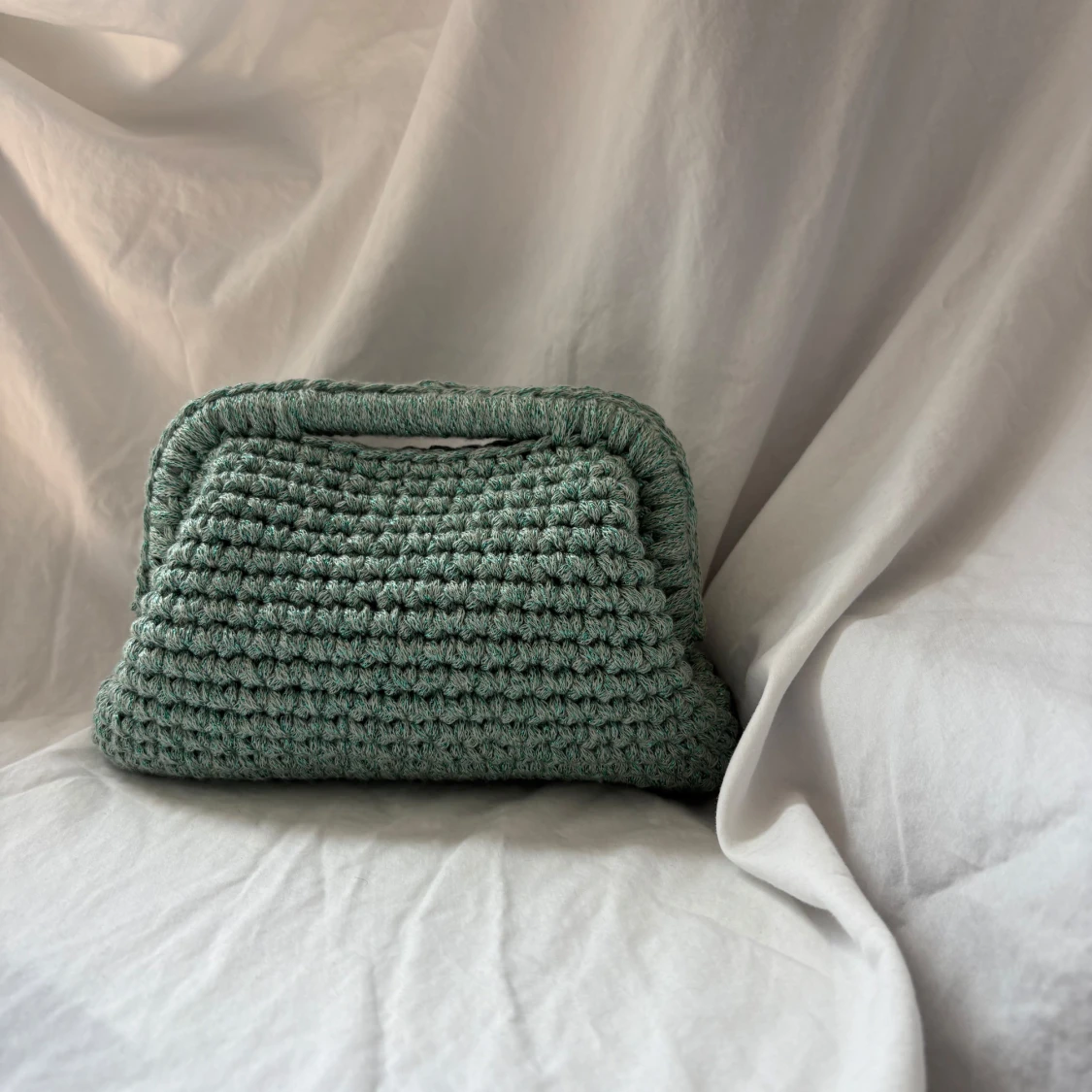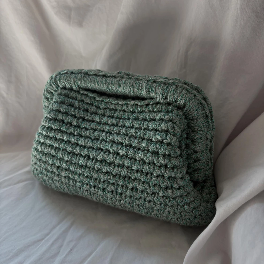 Virkad clutch i en härlig glittrig nyans av grön.💚 Mått: B24xH18 @designbybela