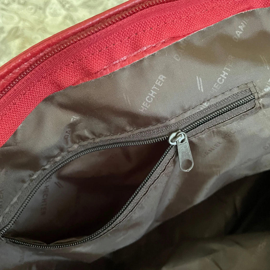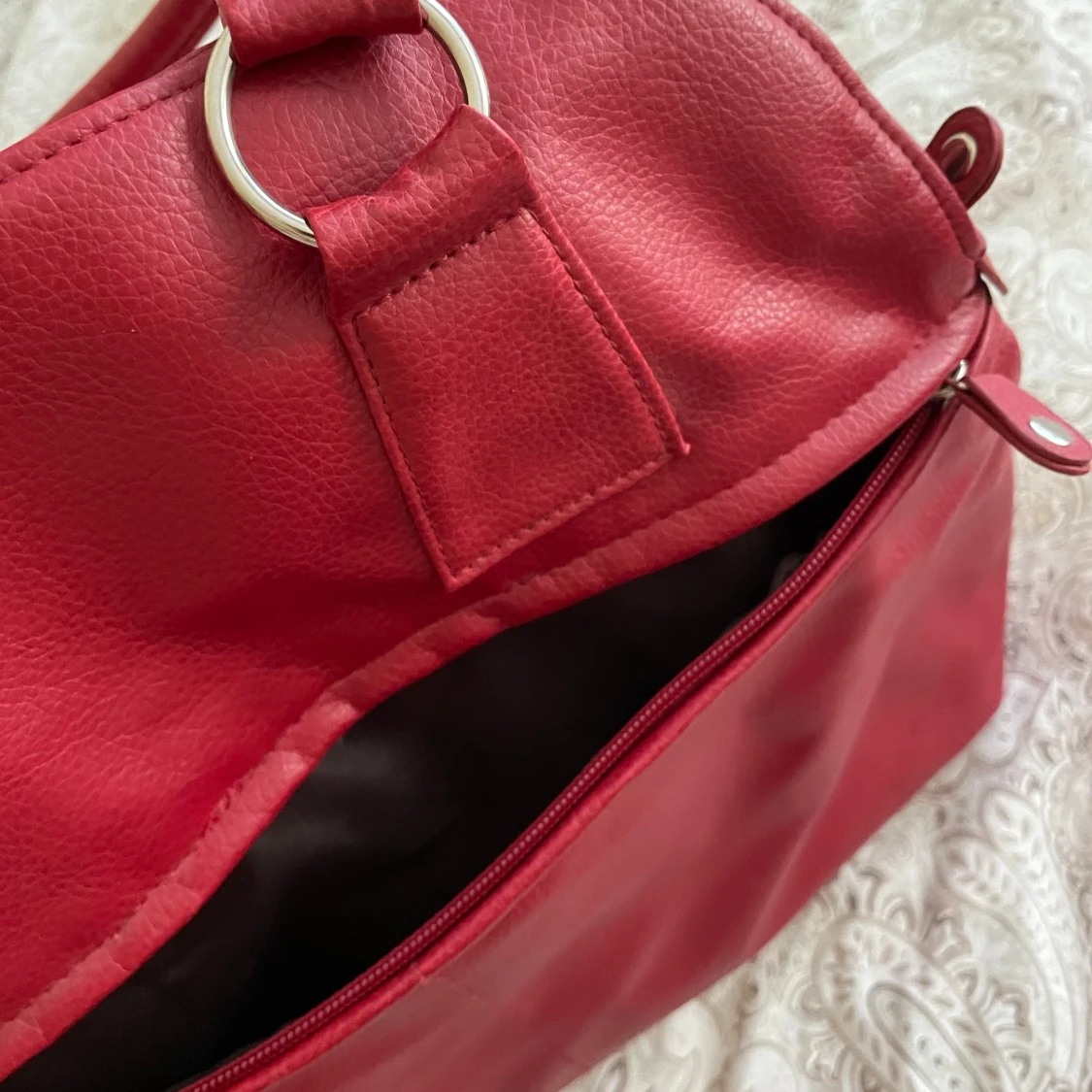 Mått på väskan i cm: Hela väskan 31x41, Stora facket 18x41, Lilla facket 10x16 Bandet 51