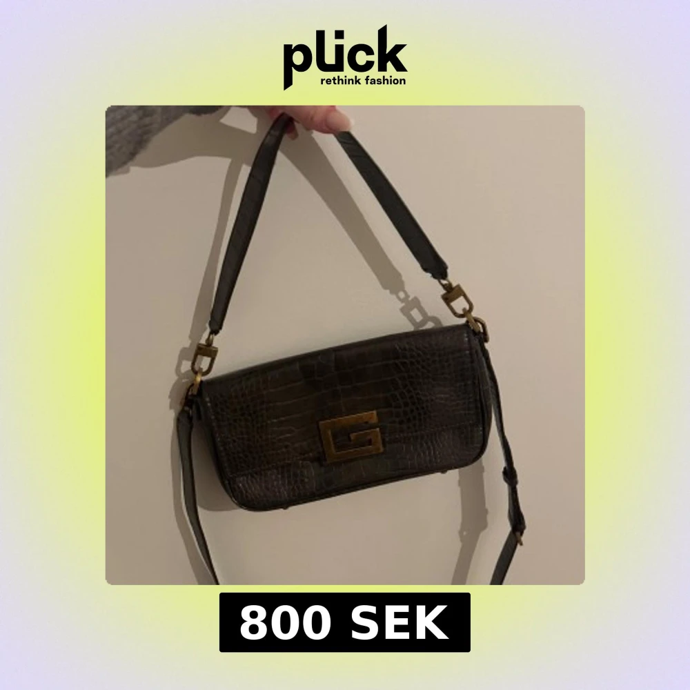 Snygg brun axelväska från Guess med krokodilpräglat mönster och guldfärgade detaljer. Väskan har en praktisk dragkedja och ett elegant innerfoder med logotyp.