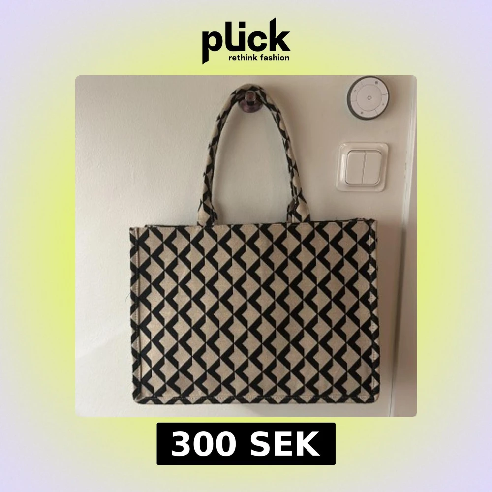 Snygg väska från H&M i beige och svart med rutigt mönster. Perfekt storlek för att bära med sig allt man behöver under dagen.