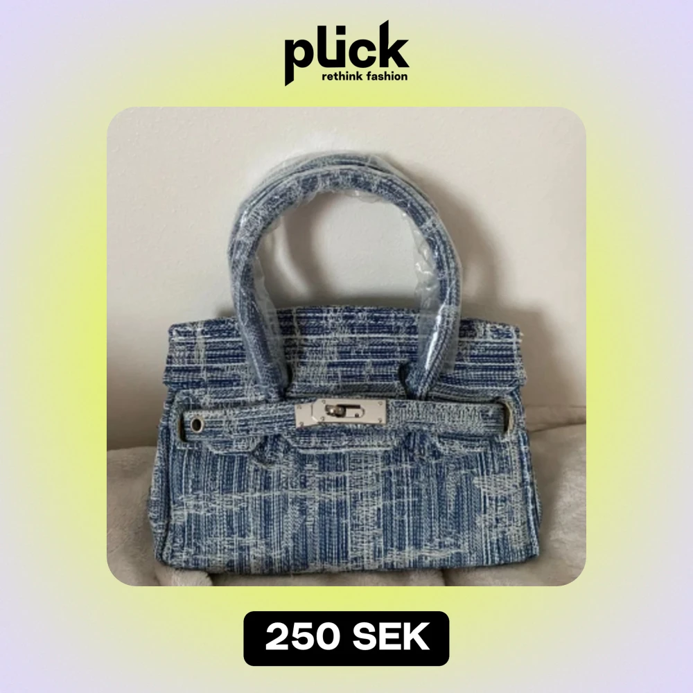 Säljer denna söta lilla väska i denim då den tyvärr inte kommer till användning. Långt axelremsband och coola accessoarer medföljer. Väskan är i nyskick, aldrig använd.