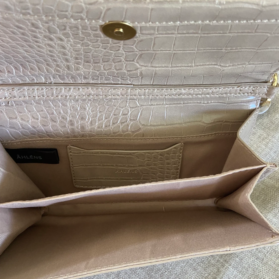 Helt oanvänd superfin väska från Åhléns i en beige/ljusrosa färg💞 Avtagbart axelrem, vilket gör att man kan byta om man så vill. Inte superstor men perfekt om man bara ska ut en liten stund💕