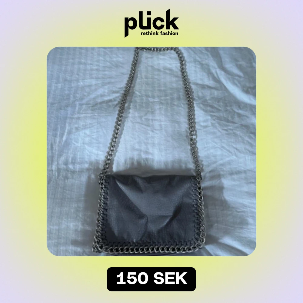 Säljer min snygga grå axelväska från Tiamo. Väskan har en kedja som axelrem och kedjedetaljer runt kanterna. Den har en dragkedja på baksidan och en magnetknapp för att stänga väskan. Perfekt för både vardag och fest!🩶