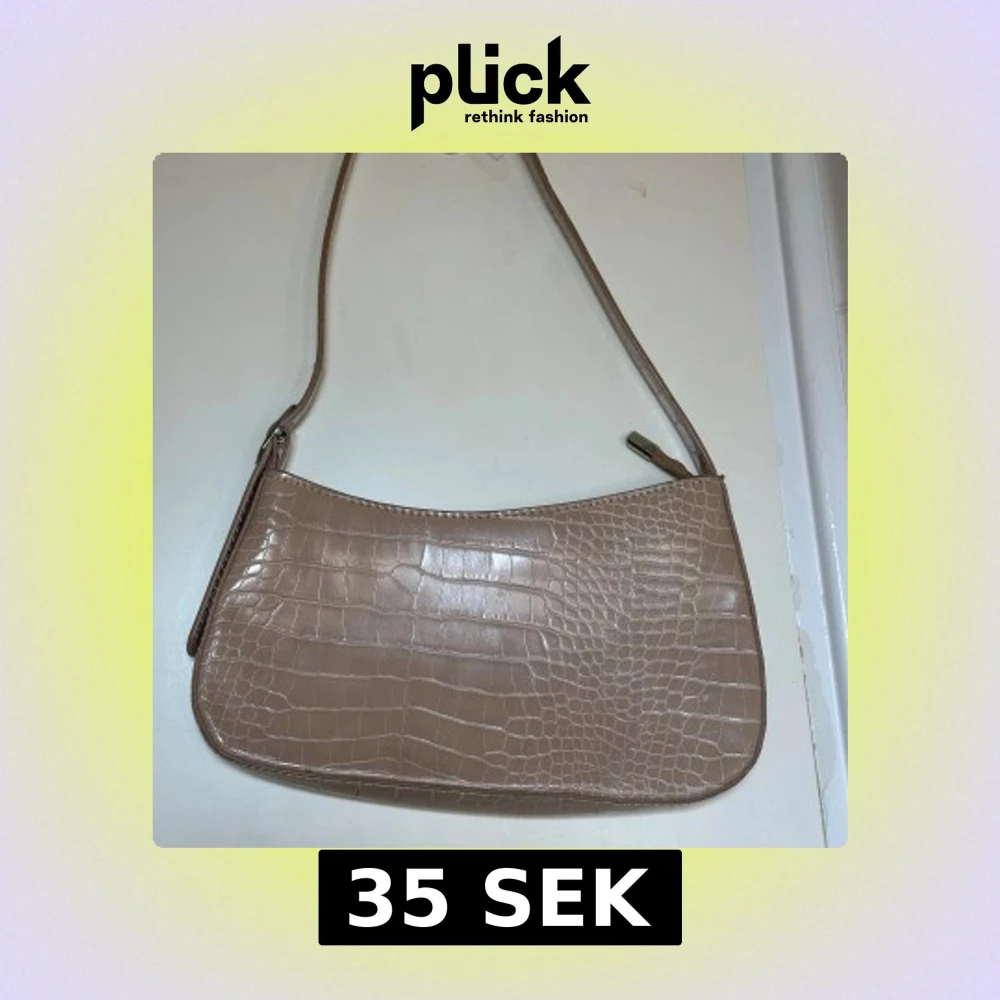 Snygg beige axelväska med krokodilpräglat mönster. Väskan har en dragkedja upptill och en justerbar axelrem. Perfekt för att ge en clean touch till din outfit 🫶🏾