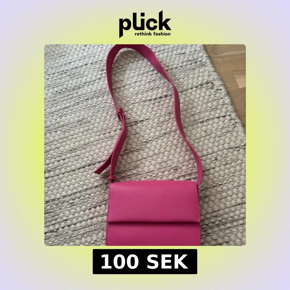Snygg axelväska i stark rosa färg med bred, justerbar rem och stilren, fyrkantig form. Väskan har flera fack inuti, inklusive ett med dragkedja, och är gjord i slätt syntetmaterial. Perfekt för dig som vill ha en färgklick till din outfit. Köpt på Lindex för 300kr. Pris kan diskuteras.