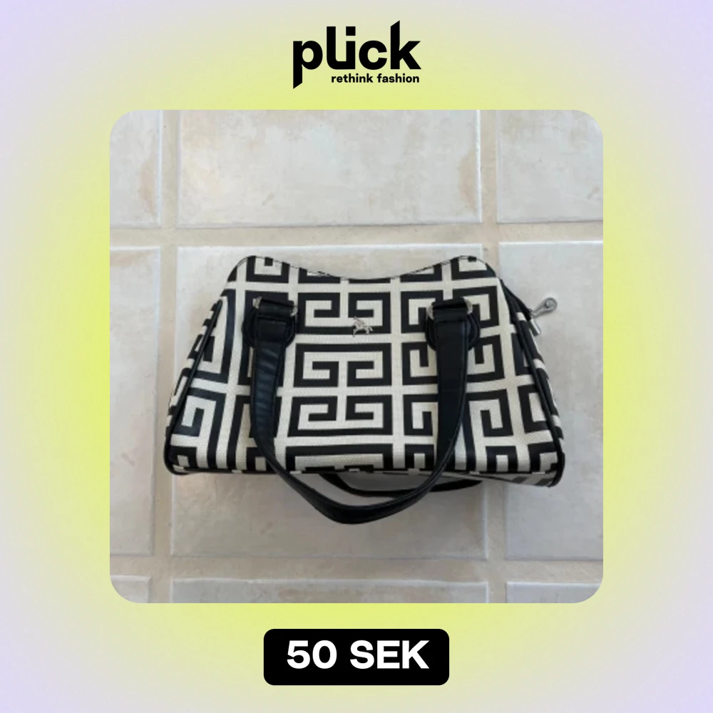 Mönstrad svart/vit handväska Några repor på baksidan (se bilder) Alla fickor hela och alla dragkedjor funkar! Skavda handtag 32 cm nertill och 24 upptill Skriv vid fler frågor!🥰
