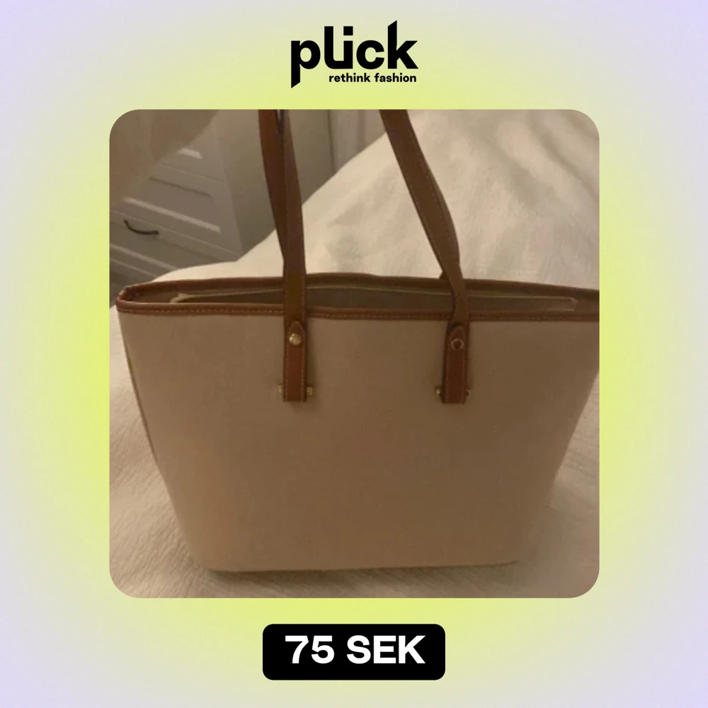 Stor vit beige handväska från H&M. Använts två gånger och är i bra skick. Har dragkedja och lite små fack inuti. Skriv om ni har frågor
