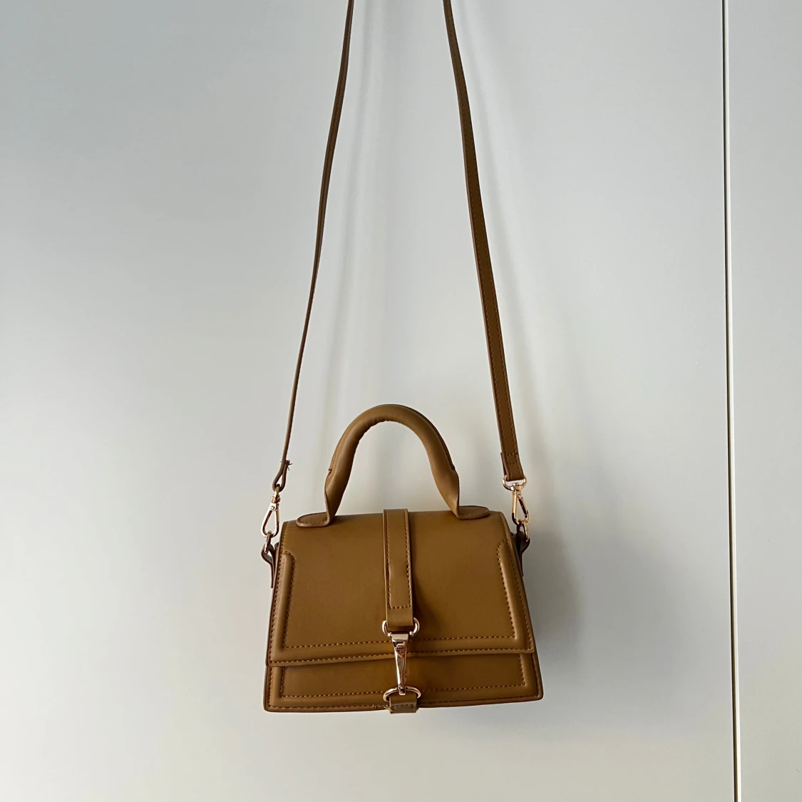 Säljer en stilren brun axelväska från H&M med både axelrem och handtag. Väskan har en fyrkantig form och stängs med ett snyggt spänne framtill. Perfekt för dig som vill ha en enkel men trendig accessoar. Färgen är lite ljusare i verkligheten. Priset kan diskuteras.