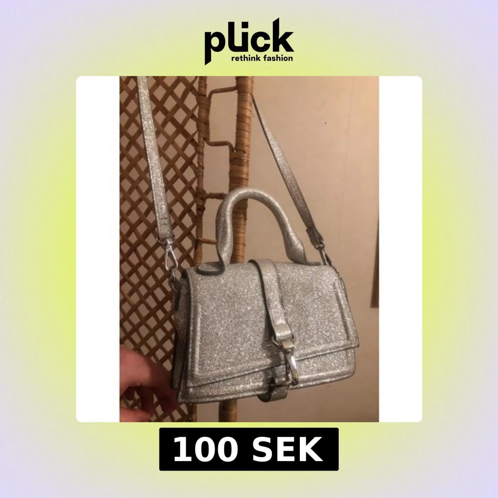 Snygg liten axelväska från H&M i glittrigt silver med både handtag och lång axelrem. Väskan har en stilren, boxig form och ett spänne framtill. Perfekt för dig som vill sticka ut med lite extra glitter och cool vibe.