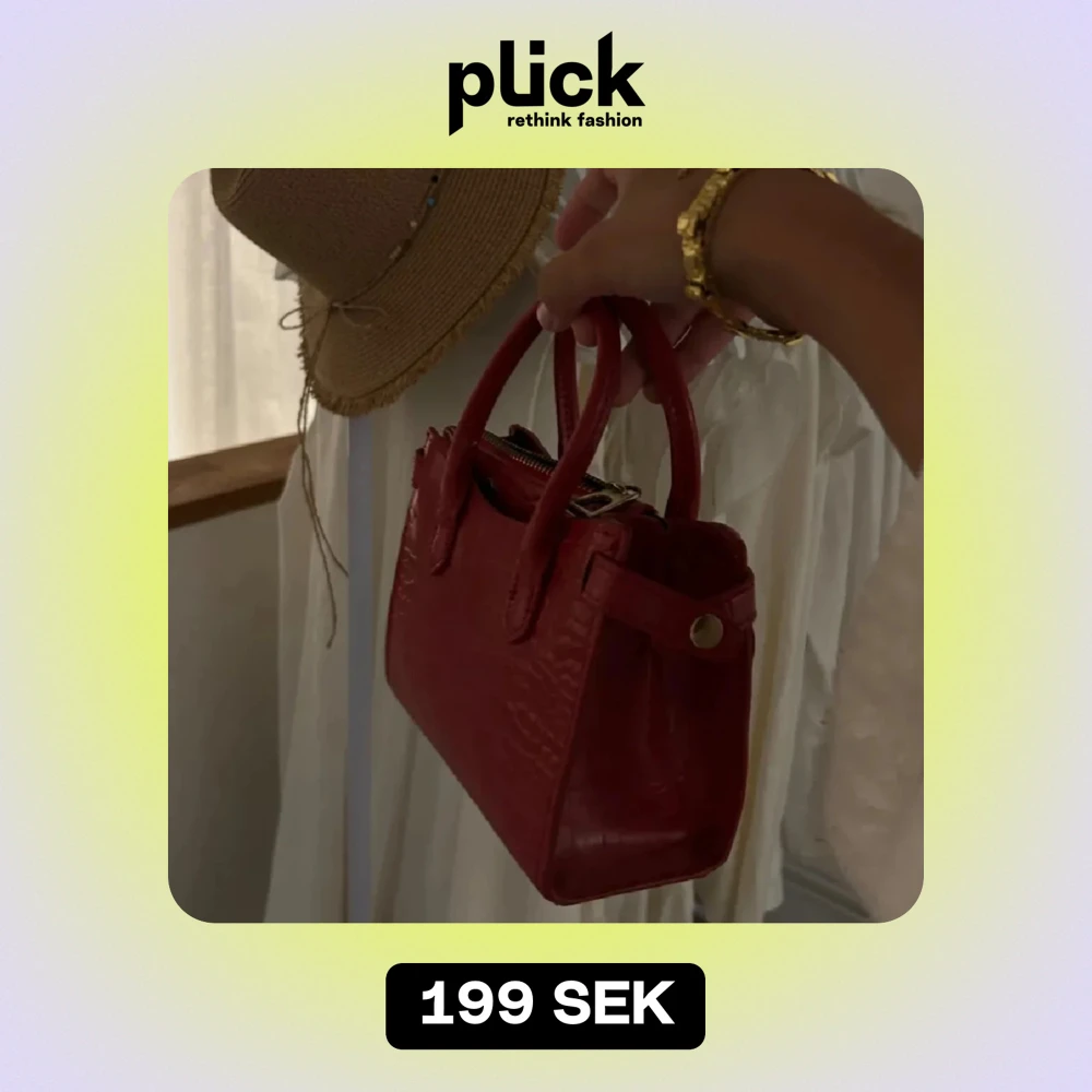 Säljer en snygg röd handväska i skinn. Den har en stilren design med två handtag och en dragkedja upptill. Perfekt för att ge en färgklick till din outfit! 👜