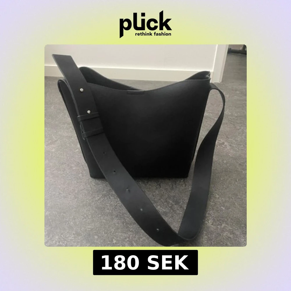 Stilren svart axelväska i slätt skinn med bred, justerbar rem och silverfärgad dragkedja. Väskan har en minimalistisk design med raka linjer och en rymlig insida, perfekt för att bära med sig allt man behöver. Passar dig som gillar enkel och modern stil.
