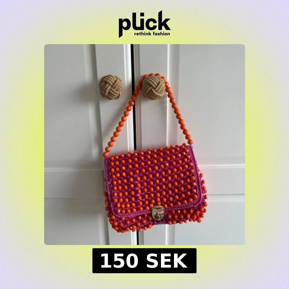 Färgglad axelväska dekorerad med orange och rosa pärlor. I väldigt bra skick.