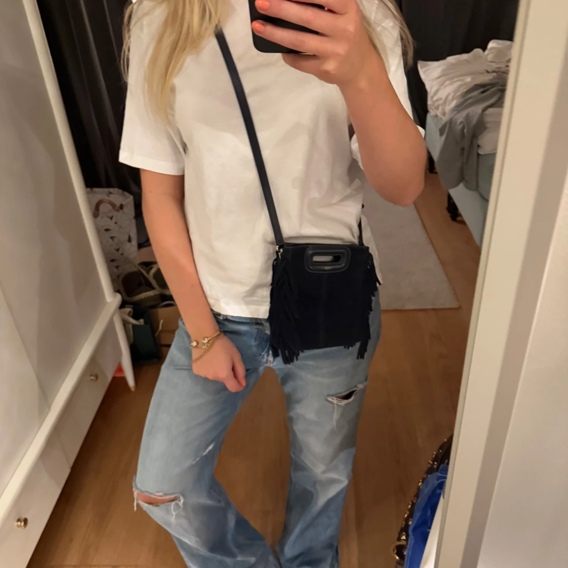 Säljer min så snygga mörkblå väska från Maje i mocka. Köptes 2023 från NK och denna färg går inte att hitta i butik längre. Väskan har inte används mycket och har endast lite defekter på handdaget. (Syns inte när man bär den) tillkommer guldkedja och axelband som båda är rostfria och har inga defekter. Mickan är även impregnerad sen tidigare och tål vatten ganska bra.💞